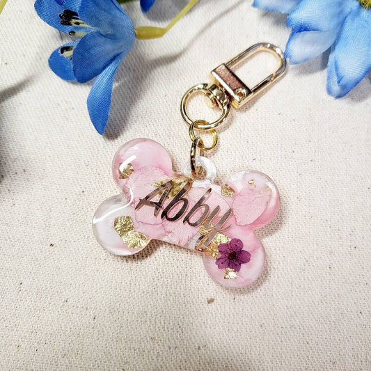 MS Custom Handmade Resin Flower Petals Dog Name Tag ID Collar Tag